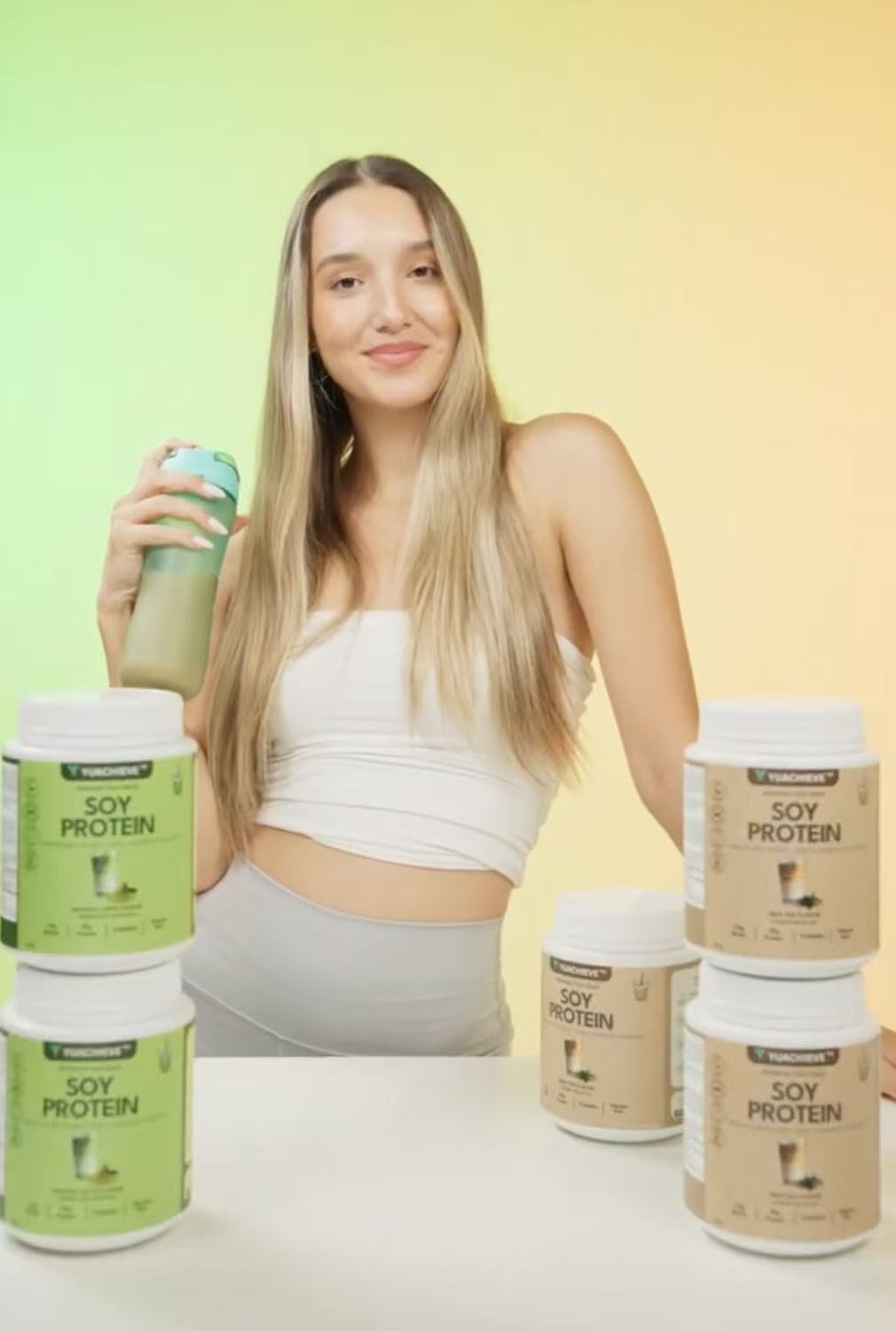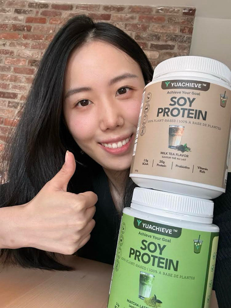 • YUACHIEVE protein powder is transparent with SGS reports online. Each 40g has 20g soy protein + BCAAs and probiotics for better absorption. It’s a complete protein, PDCAAS near 1.0, and tastes just like milk tea—so good you won’t believe it’s protein powder!