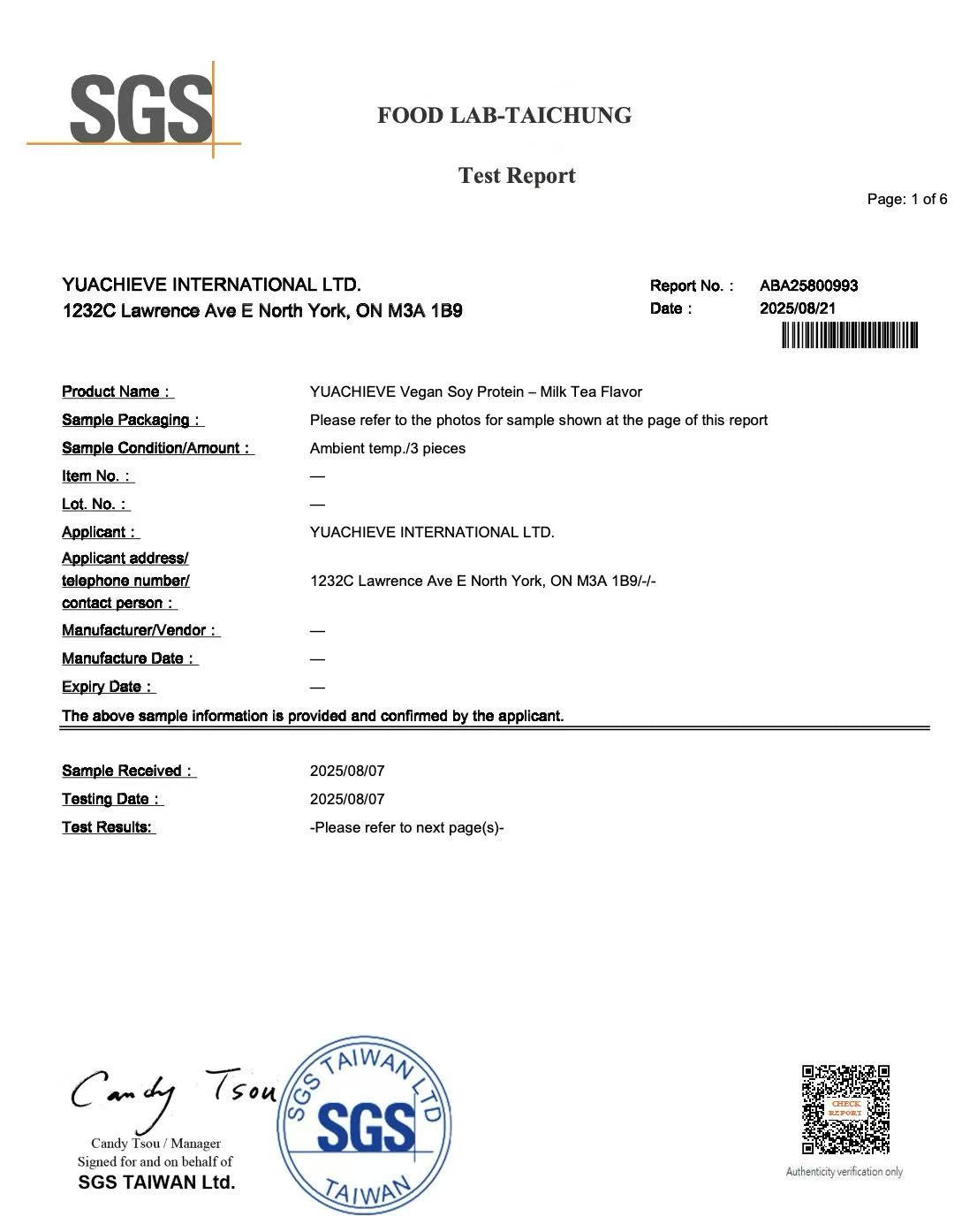 SGS YUACHIEVE Milk Tea Flavor Report